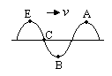 A、B、C、E均在振动加强区,且在同一条直线上,由题图可知波是由E处向A处传播,在图示时刻的波形图线如右图所示,由图可知C点向水面运动,所以C选项正确。