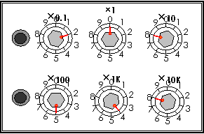 解:电阻箱面板上有6个旋钮,每个旋钮上方都标有倍率。将每个旋钮的指针所指的数值(都为整数)乘以各自的倍率,从最高位到低位依次读出来,就得到这时电阻箱的实际阻值。注意图中最左边的两个黑点是表示的是接线柱。若指针位置如图所示,则阻值为84580.2Ω。