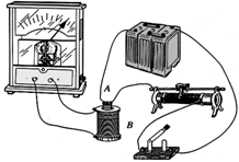 电键闭合和断开时、电键闭合后滑动变阻器的滑动触头移动过程中、电键闭合后线圈A在B中插入、拔出时,都会发现电流表指针发生偏转,说明有感应电流产生。而电键保持闭合、滑动触头不动、线圈A 在B中不动时,电流表指针都不动,说明无感应电流产生。