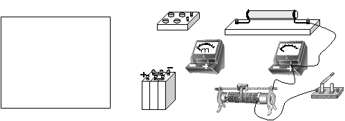 例4. 在测定金属的电阻率的实验中,待测金属导线的长约0.8m,直径小于1mm,电阻在5Ω左右。实验主要步骤如下:⑴用______测量金属导线的长度l,测3次,求出平均值;⑵在金属导线的3个不同位置上用______________测量直径d,求出平均值;⑶用伏安法测量该金属导线的电阻R。在左边方框中画出实验电路图,并把右图中所给的器材连接成测量电路。安培计要求用0-0.6A量程,内阻约1Ω;伏特计要求用0-3V量程,内阻约几kΩ;电源电动势为6V;滑动变阻器最大阻值20Ω。在闭合电键前,滑动变阻器