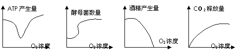 12、酵母菌是人类的第一种“家养微生物”。在一个固定容积的培养液中,单位时间内在不同的氧气浓度下,下图所示的酵母菌相关指标与实际不相符的是