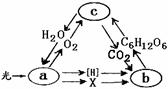 右图表示绿色植物体内某些代谢过程中物质的变化,a、b、c分别表示不同的代谢过程。以下表述正确的是