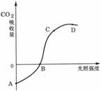 如右图所示,原来置于黑暗环境中的绿色植物移到光下后,CO2的吸收量发生了改变。据图判断下列叙述中正确的是