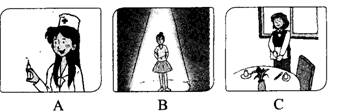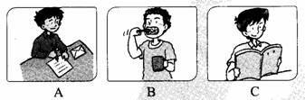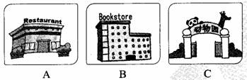 第一节:听小对话’从A、B、C三个选项中选择符合对话内容的图片。
