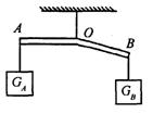5.如图4所示,杠杆AOB的A端挂重为GA的物体,B端挂重GB的物体,杠杆处于平衡状态,AO=BO,杠杆自身重力不计,则 ( )