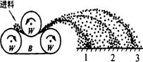 24.如图15为农用扬场机的示意图.谷物脱粒后,谷粒、糠皮及少量碎石的混合物在快速转动的轮形和皮带曰的带动下被抛出,谷粒、糠皮、碎石落地的远近不同,从而形成l、2、3三堆,达到分离的目的.其中1是_____,2是_____.从能量的角度看,它们在运动过程中能够分离,是因为_____________