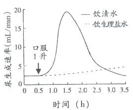 17.右图中曲线表示某健康成年人分别饮1升清水及饮1升生理盐水后的尿生成速率。错误的叙述是