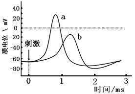 8.右图表示枪乌贼离体神经纤维在Na+浓度不同的两种海水中受刺激后的膜电位变化情况。下列描述错误的是