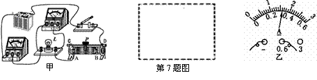 7.某中学初三年级课外兴趣小组的同学,按照图甲所示的实物连接图做“测定小灯泡的电阻”实验(小灯泡标有2.5V字样),在实验过程中得到了如下表所示的一组U和I的数据: