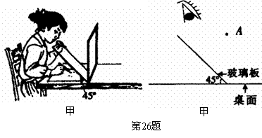 26.美术课上,小丽面前立着一幅“米老鼠”的简笔画(如下图甲所示) .她从没学过绘画,竟然清晰、准确的描出了画中的“米老鼠”.请说明其中的奥妙,并作图示意(作图时,以图乙中A点代表简笔画中的“米老鼠”) .