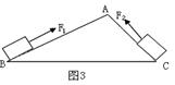 如图3所示,将同一物体分别沿光滑的斜面AB、AC以相同的速度从底部匀速拉到顶点A,已知AB>AC,施加的力分别为F1、F2,拉力做的功为W1、W2,拉力做功的功率分别为P1、P2,则下列判断中正确的是 ( )