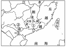 4.(2009·成都模拟)下图中,秦朝在南方设置的南海、桂林、象郡的郡治的相应标号依次是 ( )