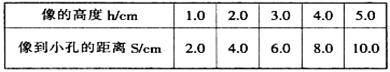 根据表中的数据可以得到的结论是:蜡烛和小孔的位置固定后,像的高度h与像到小孔的距离S成 (选填“正比”或“反比”)。