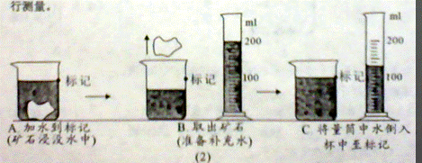 (2)带回的大理石样品体积较大,放不进量筒,因此他利用一只烧杯,按图(2)方法进行测量。