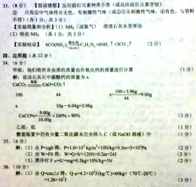 35.(6分)如图所示,小莉同学用水桶给刚刚栽上的树苗浇水。桶装满水时,水桶、水和漂浮在水面上的水勺的总重为120N,水面距桶底高度h=0.3m。(g取10N/kg,ρ水=1.0×103kg/m3)问: