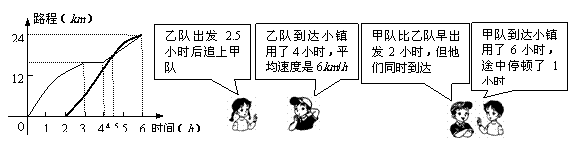 10.三军受命,我解放军各部奋力抗战在救灾一线.现有甲、乙两支解放军小分队将救灾物资送往某重灾小镇,甲队先出发,从部队基地到该小镇只有唯一通道,且路程为24km.如图是他们行走的路程关于时间的函数图象,四位同学观察此函数图象得出有关信息,其中正确的个数是( )