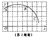 7.如图,已知直角坐标系中一条圆弧经过正方形网格的格点A、B、C。若A点的坐标为(0,4),D点的坐标为(7,0),那么圆心M点的坐标( ).