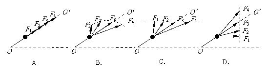 如图所示,小车上固定着三角硬杆,杆的端点固定着一个质量为m的小球.当小车水平向右的加速度逐渐增大时,杆对小球的作用力的变化(用F1至F4变化表示)可能是下图中的(OO'沿杆方向)( )