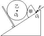 在固定于地面的斜面上垂直安放着一挡板,截面为 1/4 圆的柱状物体甲放在斜面上,半径与甲相等的光滑圆球乙被夹在甲与挡板之间,没有与斜面接触而处于静止状态,如图所示。现在从球心O1处对甲施加一平行于斜面向下的力F,使甲沿斜面方向极其缓慢地移动,直至甲与挡板接触为止。设乙对挡板的压力F1,甲对斜面的压力为F2,在此过程中