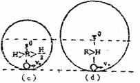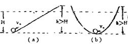 C. 以初速v0沿半径为R的光滑圆轨道,从最低点向上运动(图c,H>R>H/2)。