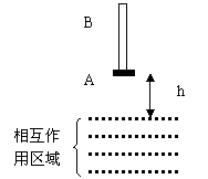 (14分)在地面上方,一小圆环A套在一条均匀足够长直杆B上,A和B的质量均为m,它们之间的滑动摩擦力大小恒为Ff =0.5mg。开始时A处于B的下端,B竖直放置。在A的下方h=0.20m处,存在一个“相互作用”区域C,固定在空中如图中划有虚线的部分。当A进入区域C时,A就受到方向向上F =2.5mg的恒力作用,但区域C对杆B不产生作用力。A和B一起由静止开始自由下落,当A第一次穿出区域C时速度的大小为2m/s,不计空气阻力,取重力加速度g=10m/s2。求: