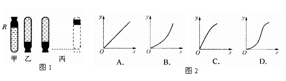 4.在一端封闭、长约1m的玻璃管内注满清水,水中放一个红蜡做的小圆柱体R,将玻璃管的开口端用橡胶塞塞紧(如图1甲)。将玻璃管倒置(如图1乙),蜡块沿玻璃管匀速上升。再次将玻璃管上下颠倒,在蜡块上升的同时,让玻璃管沿水平方向向右(设为x方向)做匀加速直线移动(如图1丙)。在图2中能正确反映蜡块运动轨迹的是