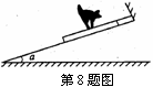 如图所示,在倾角为α的固定光滑斜面上,有一用绳子拴着的长木板,木板上站着一只猫。当绳子突然断开时,猫立即沿着板向上跑,以保持其相对斜面的位置不变。下面四个图象中能正确反映这段时间内猫对板做功的功率随时间变化关系的是