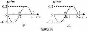 如图所示,图甲为一列沿x轴正方向传播的简谐波某时刻(t=0)的波形。图乙表示该波传播的介质中某质点从此时起的振动图象。则