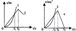 8、如图所示s-t图象和v-t图象中,给出四条曲线1、2、3、4代表四个不同物体的运动情况,关于它们的物理意义,下列描述正确的是![]()