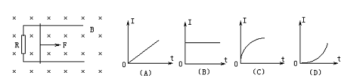 10、如图,平行导轨处于匀强磁场中,除电阻R外其余电阻不计,原来静止的导体棒受恒力F的作用而运动起来,对于感应电流的描述,下图中肯定错误的是:---------( )![]()