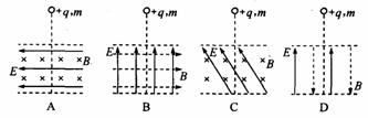 如图所示,虚线间空间存在由匀强电场E和匀强磁场B组成的正交或平行的电场和磁场,有一个带正电小球(电量为+q,质量为m)从正交或平行的电磁场上方的某一高度自由落下,那么,带电小球可能沿直线通过下列的哪个电磁场( )