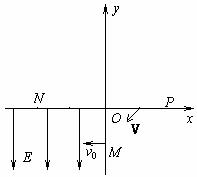 (16分)如图所示,在直角坐标系的第一、二象限内有垂直于纸面的匀强磁场,第三象限有沿Y轴负方向的匀强电场,第四象限内无电场和磁场。质量为m、带电量为q的粒子从M点以速度v0沿x轴负方向进入电场,不计粒子的重力,粒子经N、P最后又回到M点。设OM=L,ON=2L,则: