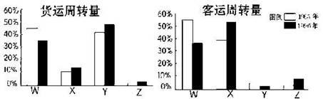 按W、X、Y、Z顺序分别对应的交通运输方式是 ( )