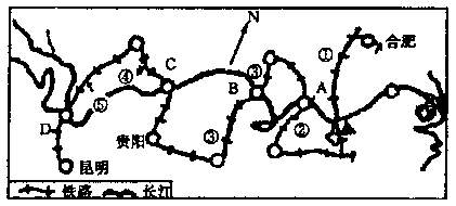 13.在我国五条南北铁路干线中,穿越长江的有 ( )