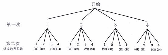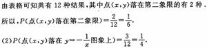 2. (1)用列表法或树状图表示所有可能结果如下:……………………………………4分