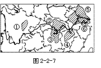 图中阴影表示我国长江流域重要的商品粮基地,读图2-2-7,完成17-18题。