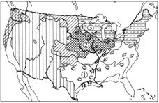 22.读2-2-10美国农业带分布图,回答下列问题。