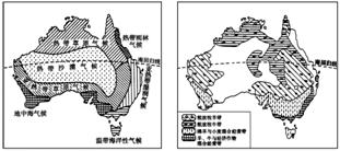 23.读2-2-11澳大利亚气候分布图和2-2-12农牧业分布图,回答下列问题。