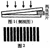 英国物理学家托马斯·杨巧妙地解决了相干光源问题,第一次在实验室观察到了光的干涉现象。右图为实验装置简图,M为竖直线光源(长直灯丝钠灯)、N和O均为有狭缝的遮光屏、P为像屏。现有四种不同带有狭缝的遮光屏,实验时的正确选择是 ( )
