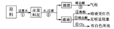 例1:(2008年汕头)松花皮蛋是我们喜爱的食品。某小组同学查阅资料得知,制皮蛋料泥的原料主要是:生石灰、纯碱、草木灰(含K2CO3)等。同学们对料泥进行了如下探究: