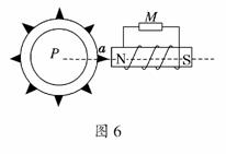 与车轮同步转动,右端有一个绕有线圈的磁体,M是一个