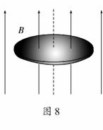 7.如图8所示,一个金属薄圆盘水平放置在竖直向上的匀强磁场中,下列做法中能使圆盘中产生感应电流的是( )