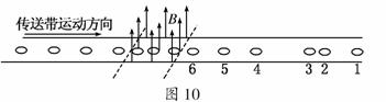 9.(2010·南京模拟)如图10所示,通过水平绝缘的传送带输送完全相同的铜线圈,线圈均与传送带以相同的速度匀速运动.为了检测出个别未闭合的不合格线圈,让传送带通过一固定匀强磁场区域,磁场方向垂直于传送带,线圈进入磁场前等距离排列,穿过磁场后根据线圈间的距离,就能够检测出不合格线圈,通过观察图形,判断下列说法正确的是