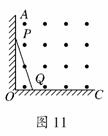 如图11所示,AOC是光滑的金属轨道,AO沿竖直方向,OC沿水平方向,PQ是一根金属直杆如图所示立在导轨上,直杆从图示位置由静止开始在重力作用下运动,运动过程中Q端始终在OC上,空间存在着垂直于纸面向外的匀强磁场,则在PQ杆滑动的过程中,下列判断正确的是