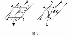 3.(2009·安徽高考)如图3甲所示,一个电阻为R、面积为S的矩形导线框abcd,水平放置在匀强磁场中,磁场的磁感应强度为B,方向与ad边垂直并与线框平面成45°角,O、O′分别是ab边和cd边的中点.现将线框右半边ObcO′绕OO′逆时针旋转90°到图7乙所示位置.在这一过程中,导线中通过的电荷量是 ( )