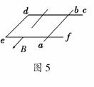 如图5所示,金属棒ab置于水平放置的光滑框架cdef上,棒与框架接触良好,匀强磁场垂直于ab棒斜向下.从某时刻开始磁感应强度均匀减小(假设不会减至零),同时施加一个水平外力F使金属棒ab保持静止,则F