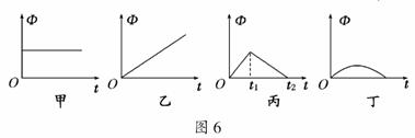 6.某闭合回路的磁通量Φ随时间t变化的图象分别如图6所示,关于回路中产生的感应电动势,下列判断正确的是 ( )