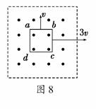 8.如图8所示,垂直纸面的正方形匀强磁场区域内,有一位于纸面且电阻均匀的正方形导体框abcd,现将导体框分别朝两个方向以v、3v速度匀速拉出磁场,则导体框从两个方向移出磁场的两过程中 ( )