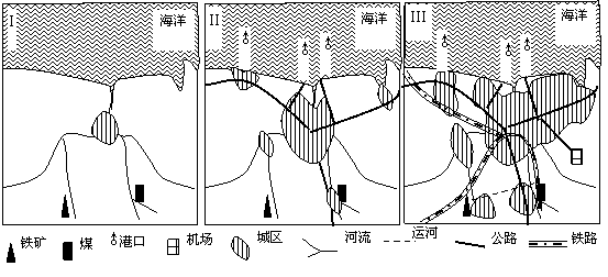 41、读某区域发展三个阶段略图,回答下列问题。(28分)(地理)