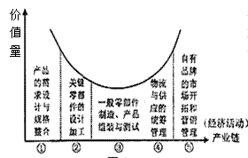 (5)、在第Ⅲ阶段后期该区域城市群内部城市间形成下图所示产业链分工体系,据此回答①-②题。(4分)